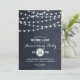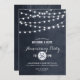 Moda diseño moderno de verano aniversario de fiesta de invitación con elegantes y simples luces de cuerda colgando por encima y una elegante mezcla de fuentes de escritura modernas y caligráficas en un falso fondo de textura color agua. Un diseño sencillo y elegante, perfecto para el verano. Haga clic en el botón IT PERSONALIZAR para personalizar de fuentes, mueva el texto y cree su propio diseño único de invitación.