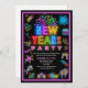 Invitación de tipografía de caligrafía de Nochevieja de neón festivo con luces de neón y fuegos artificiales