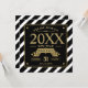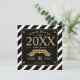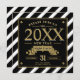 Tarjeta plana de invitación y sobres estilo Art Deco Black and Gold New Year Party. Un atrevido fondo negro y blanco rayado con letras formales en negro y oro. Perfecto para un evento formal de corbata negra/champán. Diseñado por Jacqueline. Personalizado por usted.