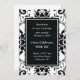 Invitación de recepción de bodas con diseño de damasco en blanco y negro. Si ya se casó y está organizando la celebración de la boda más tarde, personalice esta invitación para su evento. También sirve como anuncio de bodas si tuvo una pequeña ceremonia privada o una boda en el destino y quiere informar a la gente. Texto totalmente editable, agregue su propia información.
