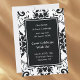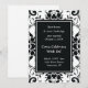 Invitación a la recepción de bodas con diseño damasco en blanco y negro. Si ya se casaron y están organizando la celebración de la boda más tarde, personalice esta invitación para su evento. También sirve como anuncio de boda si tuvieron una ceremonia privada pequeña o una boda de destino y quieren informar a la gente. Texto totalmente editable, agregue su información.