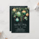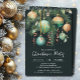 Las invitaciones elegantes para la fiesta de Navidad presentan ramas de pino, adornos de bola de Navidad verdes y dorados y cintas en un fondo verde oscuro con tus detalles en letra chic, perfectas para tu reunión festiva de vacaciones. Artículos COINCIDENTES en nuestra colección.