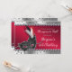 Invitación de fiesta de baile de máscaras plateada y roja. Esto se puede personalizar para cualquier ocasión.