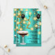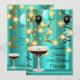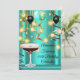 Invitaciones elegantes y sofisticadas para todas las ocasiones para mujeres y señoras. Celebración de cumpleaños con globos negros plateados y luces de café de cóctel de espresso fabuloso de oro azul turquesa.