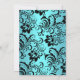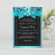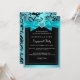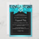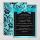 Invitación de fiesta de compromiso. Lazo azul verdoso con corazón de joya y diseño floral negro. POR FAVOR Tenga en cuenta que todas las imágenes planas. ¡No tienen lazos, diamantes o joyas reales!!