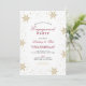 Celebra tu día especial con esta elegante invitación de fiesta de compromiso de invierno. Este diseño presenta hermosos copos de nieve y gráficos brillantes en tema de color dorado y rojo. Puedes personalizar el texto para cualquier evento de invierno. Más invitaciones de celebración de compromiso y suministros para fiestas están disponibles en mi tienda BaraBomWedding.