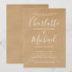 Con nombres de estilo característico, esta elegante y moderna invitación simple para una fiesta de compromiso puede personalizarse con su información en tipografía blanca chic sobre un fondo kraft rústico. Diseñado por Thisisnotme©