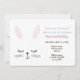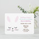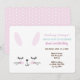 Invitación de conejito en un esquema de color rosa y blanco, con una ilustración de un conejito lindo y un fondo de lunares para el reverso. Perfecto para un primer cumpleaños, una fiesta de cumpleaños para niños pequeños o una fiesta de Pascua.