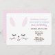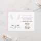 Invitación de conejo en un esquema de color rosa y blanco, con una ilustración de un conejo lindo y un fondo de lunares para la parte trasera. Perfecto para un primer cumpleaños, una fiesta de cumpleaños para niños pequeños o una fiesta de Pascua.