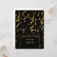 Plantilla de invitación de fiesta de confeti dorado. Invitación de fiesta de celebración de confeti dorado. Personalice su fuente, estilo, colores e imágenes son redimensionables. Personalice su invitación de fiesta. Ideal para año nuevo, fiesta de cumpleaños o aniversario. Simple y limpio sobre fondo negro. Nota: no se utilizará oro metálico real en el diseño.