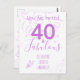 ¡Celebra la próxima década! Haz que sea digna del evento que es con este diseño fabuloso, festivo y divertido con tipografía rosa caliente y púrpura, que invita a todos a unirse a la celebración de la cumpleañera de 40 años fabulosa y personalizada con su nombre. Texto rosa caliente o púrpura sobre un fondo de serpentinas rosadas y confeti. Apropiado para la sobriedad al eliminar fácilmente el gráfico de la copa de vino. ¿La cumpleañera cumple una edad diferente a 40? Cambia fácilmente la edad haciendo clic para personalizarla y cambiar los campos de edad.