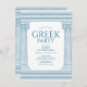 Elegante invitación de cumpleaños griega o romana togolesa con elegantes columnas del templo y un patrón griego de serpentín en azul. Producto de personalizable para una celebración memorable. Perfecto para bodas, compromisos, fiestas de graduación, aniversarios, guardar las fechas, soltera y fiestas de cumpleaños. Compruebe la colección coincidente para COORDINAR ELEMENTOS. Obra de arte original de PUPSIKU STUDIO. Productos 100% únicos.