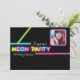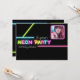 Invitación de fiesta de cumpleaños con foto de NEON PARTY Glow. Personalice con su foto y texto.