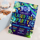 Invitación de fiesta de cumpleaños de la etiqueta láser brillante Neon