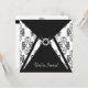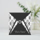 Elegante diseño de damasco negro y blanco con plantilla de invitación multiusos con adornos de diamantes y negro. Este diseño de plantilla funciona bien como invitación a una fiesta de cumpleaños, cóctel, fiesta navideña, evento corporativo, gala, fiesta de jubilación, fiesta de graduación y cualquier otra ocasión especial. Personalice con su elección de estilo de fuente y color de fuente, y color de fondo en la parte posterior.