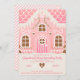 Esta invitación de Casa de Pan de Jengibre presenta una festiva casa de pan de jengibre decorada con rosa y blanco. Coordina con la colección de Fiesta de Pan de Jengibre. Puedes editar para incluir todos los detalles divertidos de tu fiesta. La parte trasera tiene un patrón de franjas diagonales rosa y blanco.