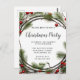 ¡Te invitan a un Fiesta de Navidades Merry y Bright! Celebre la temporada festiva con nosotros y disfrute de deliciosa comida, bebidas y música. Tendremos una acogedora chimenea, un intercambio de regalos y mucha diversión. ¡No te olvides de llevar tu suéter feo! La tarjeta presenta una hermosa imagen de corona que simboliza el espíritu de los Navidades. La corona está hecha de ramas verdes y bayas rojas. El texto está escrito en una fuente alegre que se puede personalizar