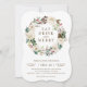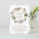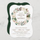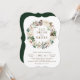 Invite a sus huéspedes con estilo y con una elegante invitación para fiestas. Este diseño presenta una florida corona de vacaciones en los colores clásicos de los Navidades.