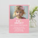 ¡Celebra el segundo cumpleaños de tu pequeño corazón de la manera más dulce! Esta adorable invitación de cumpleaños rosa "Two Sweet" es perfecta para tu pequeño que ama los donuts. Con un diseño divertido donde la "O" en "TWO" es un delicioso donut rosa glaseado, esta invitación de foto personalizable es la mezcla perfecta de lindo y moderno.