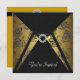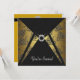Invitaciones de fiesta y evento con diseño de seda negra sobre dorado con ribete negro y diamante. Este diseño de plantilla funciona bien como invitación a una fiesta de cumpleaños, cóctel, fiesta navideña, evento corporativo, gala, fiesta de jubilación, fiesta de Nochevieja y cualquier otra ocasión especial. Personalice con su elección de estilo de fuente y color de fuente, y color de fondo.
