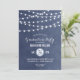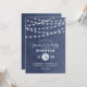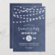 Moda diseño de invitación de fiesta de graduación de verano moderno con elegantes y sencillas luces de cuerda brillantes colgando por encima y una elegante mezcla de fuentes de escritura modernas y caligráficas en un falso fondo de textura color agua. Un diseño sencillo y elegante, perfecto para el verano. Haga clic en el botón IT PERSONALIZAR para personalizar de fuentes, mueva el texto y cree su propio diseño único de invitación.