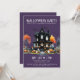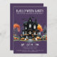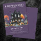 Bienvenido a tu fiesta de disfraces de Halloween con esta invitación espeluznante pero simple. El diseño presenta un fondo morado oscuro con un esquema de color blanco y negro, combinado con una mezcla de tipografía de fuente ornamentada y serif. En el centro de la invitación se encuentra una casa de acampada negra, acentuada con brotes de naranjas de calabazas, calabazas y árboles misteriosos. Los fantasmas y murciélagos juguetones flotan para completar la divertida y espeluznante vibra. El tipo de letra tiene un estilo vintage, de inspiración griega, que le da a la invitación un aspecto nostálgico y antiguo. Esta invitación a la fiesta de Halloween es perfecta para marcar el tono de una noche de espeluznante diversión. Cute Vintage Gótico Tonto Disfraces Invitación a la fiesta de Halloween. Disponible en forma de invitación impresa o como una invitación digital descargable que puede enviar por correo electrónico o que ha impreso localmente.