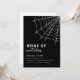 La temporada de miedo ha llegado. La invitación presenta un diseño elegante, con fondo negro y telaraña en la esquina. En el centro, los detalles de la fiesta están bellamente escritos en un texto blanco que emana un aire de diversión espeluznante. Da la bienvenida a tus invitados a tu próxima fiesta de cócteles, cena o fiesta de Halloween con estilo. El color de fondo y el texto son editables.