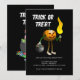 Invitación a la fiesta de Trick o Treat de Halloween para niños con calabaza en un truco o un tratamiento.