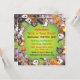 Super Fun Halloween Trick o Treat Party Invitation con una gran variedad de galletas espeluznantes. Calabaza de galletas de azúcar, esqueleto de pan de jengibre, fantasmas amistosos, gato negro, gorra de brujas, cabeza de monstruo, telaraña, maíz de dulce y otras galletas horneadas rodean la información de su fiesta. Ideal para una fiesta de halloween para niños o adultos. Ilustracion dibujado a mano por McBooboo.
