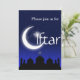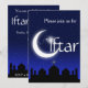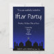 Una silueta de una mezquita sobre un fondo de cielo nocturno con luna y estrellas.