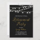 ¡Celebra un día especial con esta elegante invitación de fiesta dorada! Este diseño presenta una tipografía de guión elegante con una textura de brillo dorado y una cadena de luces sobre un fondo negro. Puedes personalizar el color de fondo.