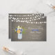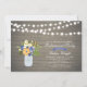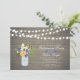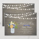 Celebre su día especial con esta elegante invitación de fiesta sorpresa. Este diseño cuenta con luces de cuerda, frasco de albañil y ramo de flores con un fondo de madera rústica. Perfecto para un evento de otoño.