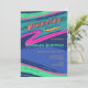 La invitación de la fiesta de los 90 incluye una tipografía de colores llamativos de "Fiesta de los 90". Este diseño incluye elementos de verdes, naranjas, púrpuras y rosas, colores en bloque y elementos de diseño abstracto inspirados en los 90. Incluye una plantilla para personalizar.