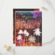 Tarjeta postal de invitación de fiesta de luces de verano que brillan palmeras