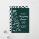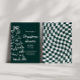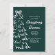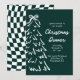 Esta invitación para la cena de Navidad presenta cuadros de color verde oscuro intenso, un árbol de Navidad dibujado a mano y un hermoso lazo que lo une todo. Cuenta con una tipografía divertida y de inspiración vintage y una paleta de colores blancos y verdes. ¡Invite a sus amigos y seres queridos a su cena anual de fiesta navideña!