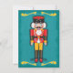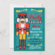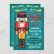 Super linda y bonito Invitación a la fiesta de los Navidades. Cuenta con un gran nutcracker, fuentes divertidas y un fondo verde azulado rústico oscuro. Ideal para una casa abierta, cumpleaños o cualquier evento para la temporada navideña. Ilustracion dibujado a mano por McBooboos