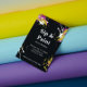 18 pt de grosor / 120 lb de peso. Blanco suave, textura suave tipo cáscara de huevo.