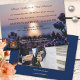 Una invitación para una fiesta después de la boda con una escena costera romántica al atardecer con una linterna festiva con luces brillantes. En la parte posterior hay espacio para tu propia foto. Ideal para una recepción solamente o una celebración después de la boda.