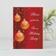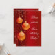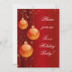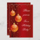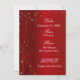 Invitación de vacaciones con fondo rojo oscuro y adornos dorados con remolinos, cintas, copos de nieve y estrellas. Añade fácilmente tus propios detalles y tienes invitaciones festivas.