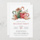 Esta encantadora y festiva invitación a la fiesta de Navidad ofrece bonitas galletas de acuarela pintadas a mano y tazas de cacao con hermosas zonas verdes de invierno.