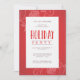 Invitación de fiesta de bonito con motivos florales en un fondo rojo. Los detalles del fiesta están escritos en letra moderna. Puede mover, eliminar o cambiar la mayoría de los elementos de diseño/fuentes/fondo según su elección/preferencias.