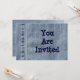 Invitación de fiesta impresa sobre una foto de jeans azules descoloridos