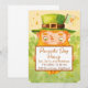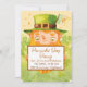 Una invitación de fiesta del Día de San Patricio linda y alegre que presenta un adorable duende sosteniendo un letrero festivo, rodeado de suaves tréboles verdes y texturas cálidas de acuarela. Perfecta para fiestas con tema irlandés, celebraciones familiares, eventos de pub o reuniones del Día de San Patricio. Este diseño encantador agrega un toque divertido y afortunado a cualquier celebración.