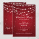 Plantilla de invitación para fiesta de Navidad/boda/cena con cadena brillante elegante y cielo invernal estrellado sobre fondo rojo. Impresiona a tus amigos con este diseño de invitación sofisticado y elegante. ¡Totalmente personalizable!