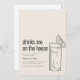 Invite a sus amigos y familiares a celebrar su nuevo hogar con una encantadora invitación para una fiesta de limpieza con el alegre tema "Las bebidas están en la casa". El entorno es cálido y beige, creando un ambiente acogedor y acogedor. En el lado izquierdo, los detalles del fiesta se presentan en un sencillo tipo de letra negro, asegurando claridad y elegancia. A la derecha, un minimalista ilustracion de contorno de un cóctel alto le da un toque de diversión y carácter al diseño. Esta invitación combina a la perfección una temática alegre con una estética elegante, prometiendo una deliciosa e inolvidable celebración del cambio de hogar.