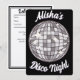 Invitación personalizada para una fiesta de cumpleaños disco. La invitación muestra una ilustración de caras con una bola de discoteca. Invitación perfecta para cumpleaños, despedida de soltera o noche de chicas.