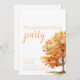 Si te encantan los neutrales, esta simple invitación al estilo es correcta para ti. La invitación presenta un diseño elegante, con un fondo suave de color blanco. En el centro, los detalles del fiesta están bellamente redactados en un texto naranja que exuera un aire de sofisticación. El follaje suave de caída sobre los colores cambiantes del árbol de caída está en el lado derecho. Bienvenido a su fiesta de la casa. El color de fondo y el texto son editables.