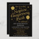 Esta divertida y festiva invitación de fiesta de aniversario de boda sorpresa presenta un fondo negro con globos y estrellas de purpurina dorada falsa. Tiene un toque elegante y caprichoso con un borde elegante. ¡Para 5º, 10º, 15º, 20º, 25º, 30º, 35º, 40º, 45º, 50º o cualquier otro intermedio!