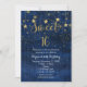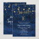 Invitación de fiesta Sweet 16 de estrellas doradas y azul brillante. Personalice ambos lados de la manera que desee, para cualquier evento.