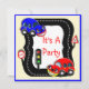 Una imagen linda para todos esos niños que aman jugar con autos; en colores brillantes es una forma divertida de anunciar una fiesta de cumpleaños y fácil de personalizar con tus detalles.